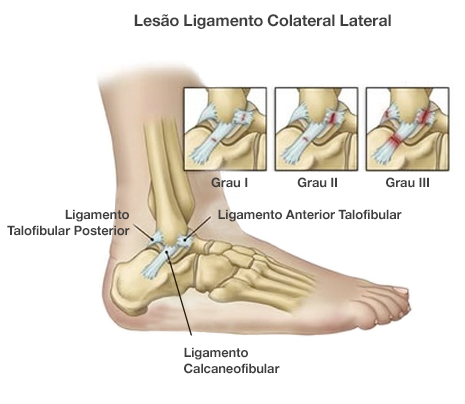 As entorses de tornozelo são classificadas em três graus de gravidade: