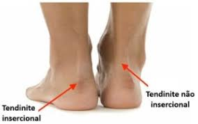 Esse tipo de tendinite acomete a região mais próximo do calcanhar, bem no local aonde o tendão insere no osso, daí a origem da nomenclatura. Normalmente a dor é bem localizada, com presença de uma proeminência ou volume posterior nessa região, que alguns pacientes denominam de esporão, como visualizado na foto abaixo. A dor geralmente está relacionada ao atrito dos calçados no local ou ao realizar o movimento de dorsiflexão (puxar o pé para cima).