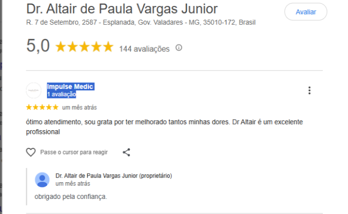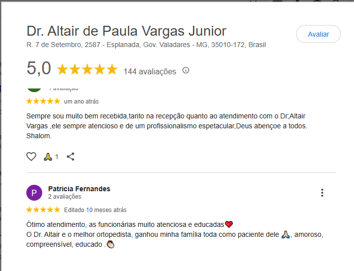 O que os paciente dizem do Dr. Altair Vargas Junior