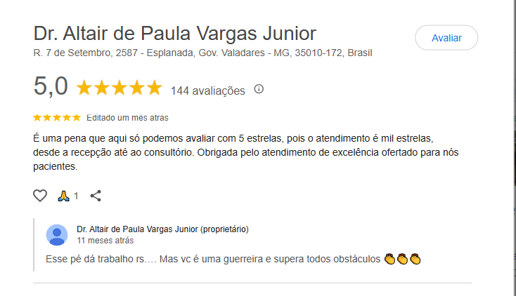Avaliação do Dr. Altair Vargas Junior – Ortopedista